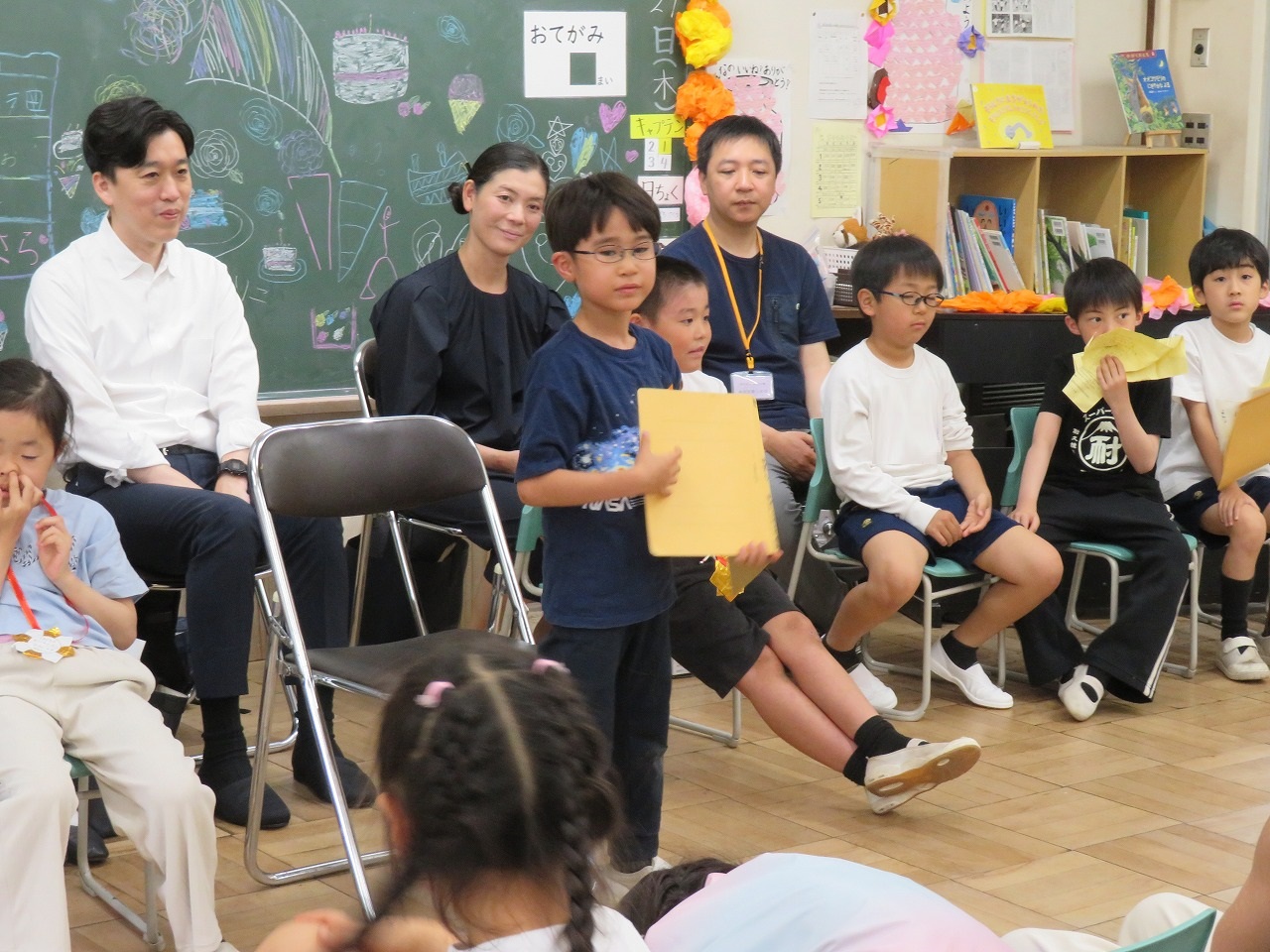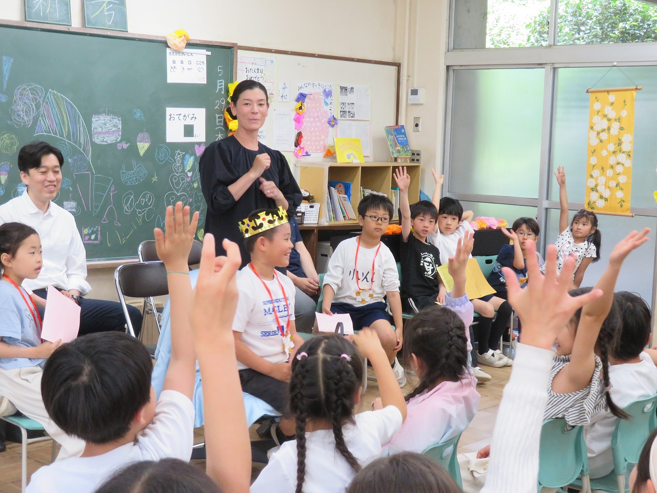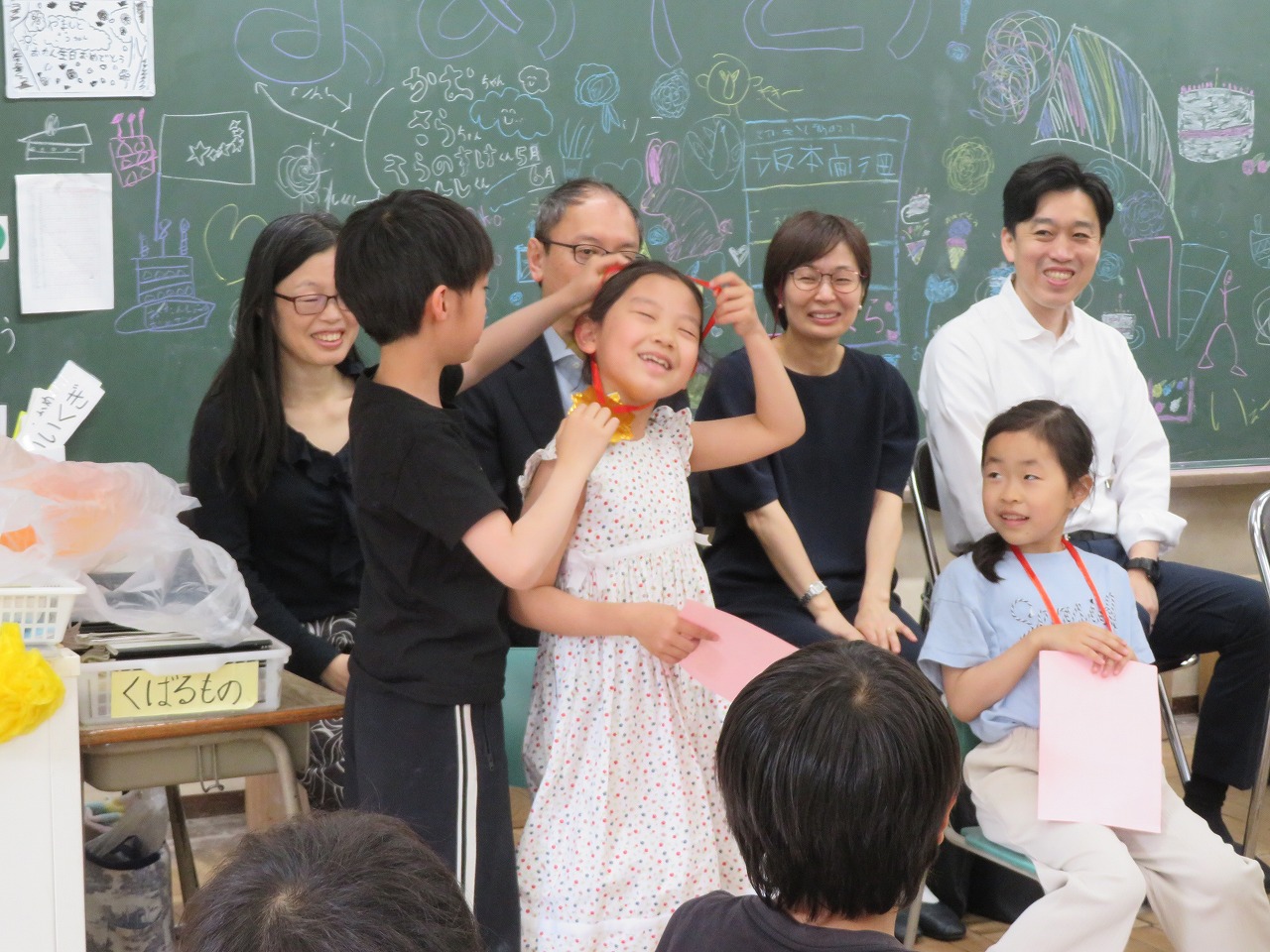 その日だけの特別ないすに座って、ちょこんと王冠をのせた主役の子は、自分の話を聞いているとき、恥ずかしそうに、でも少しほこらしげにも見えます。