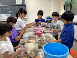 ふわふわの雲のよう 4年生 羊の毛洗い・カーディング