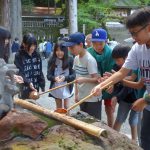 にぎやかなバスの車内から一変して、歴史ある神社の厳かな雰囲気が子どもたちの姿勢を凛とさせます。