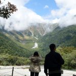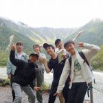 エメラルドグリーンに流れる梓川も、その先に見える穂高連邦の峰々も、子どもたちを迎えているようです。