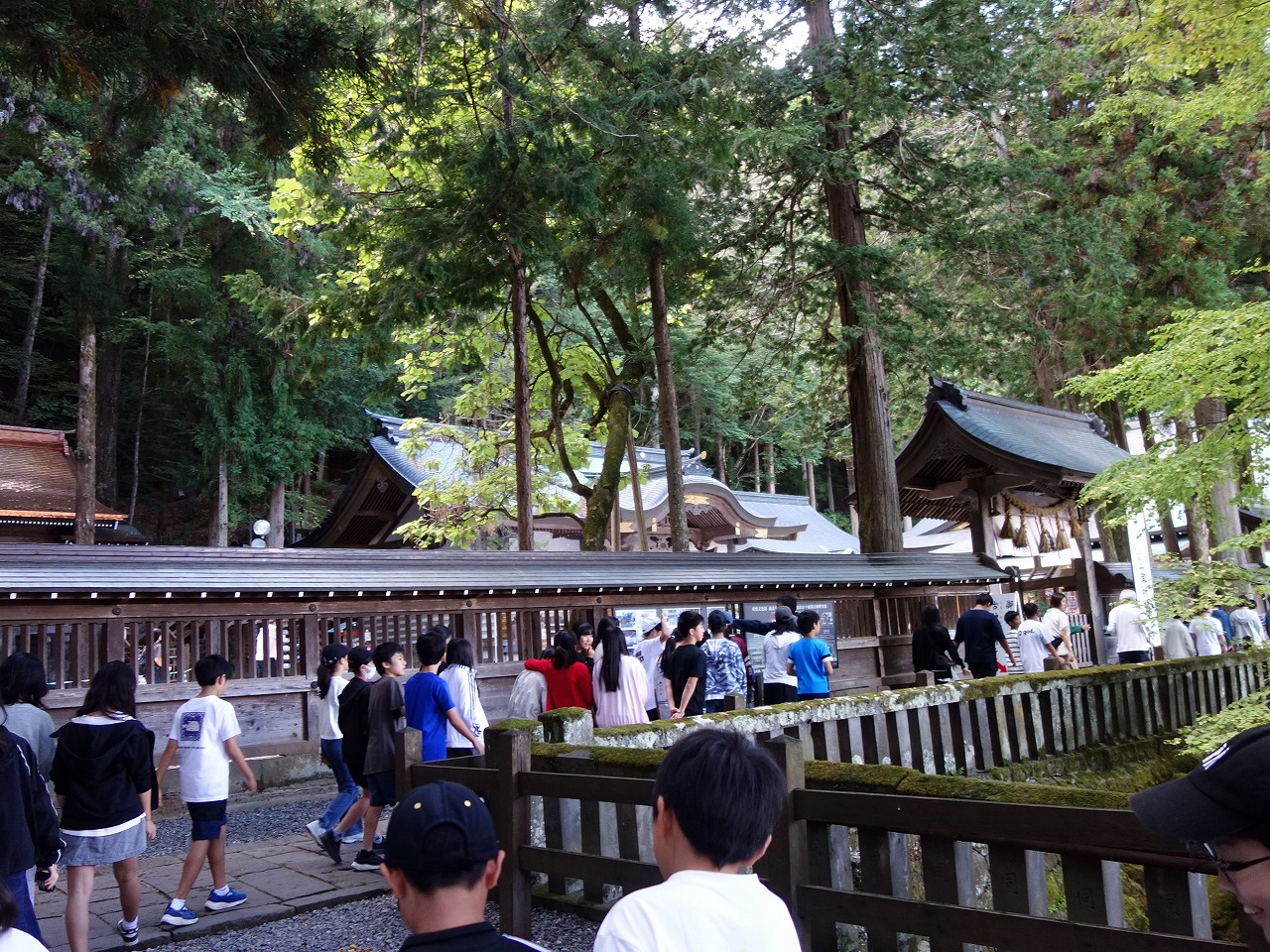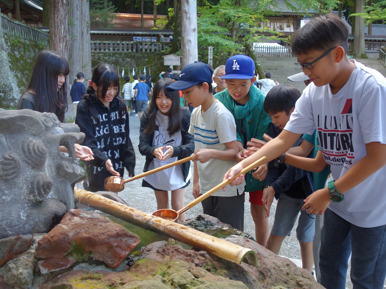 にぎやかなバスの車内から一変して、歴史ある神社の厳かな雰囲気が子どもたちの姿勢を凛とさせます。