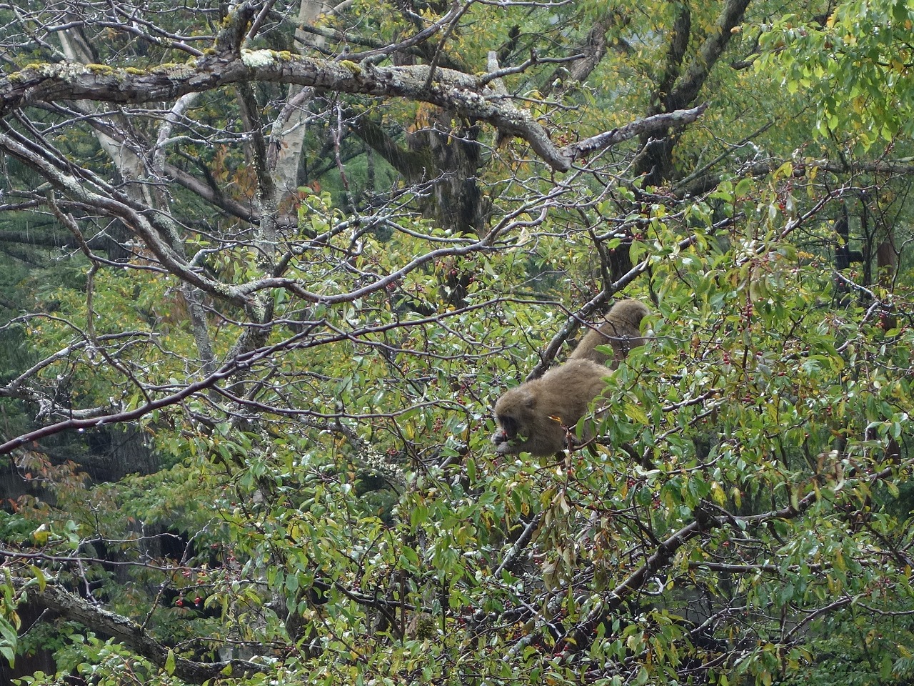 大正池の脇に着いたバスを降りると残念ながら小雨が降っていました。