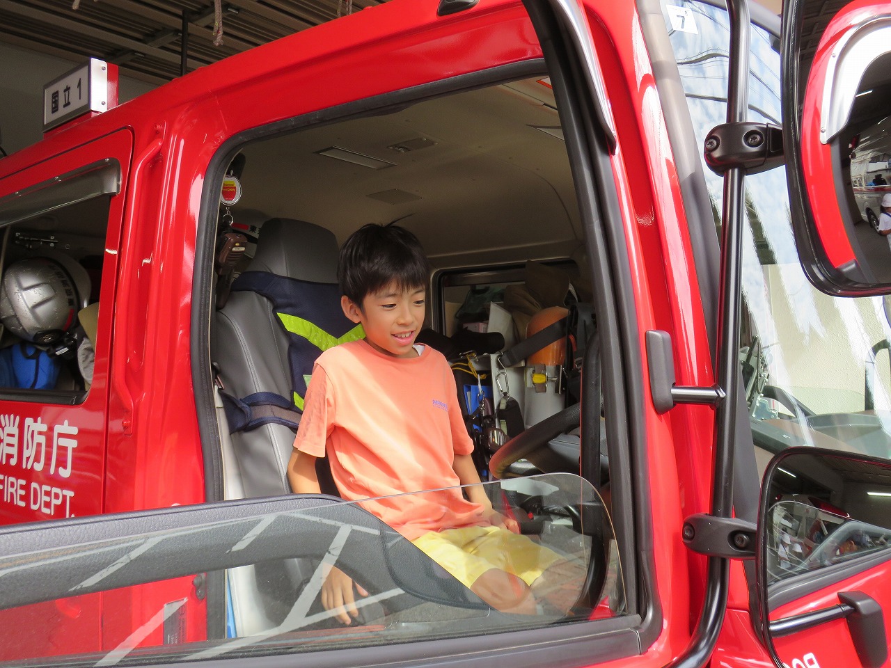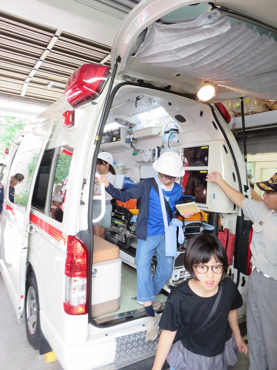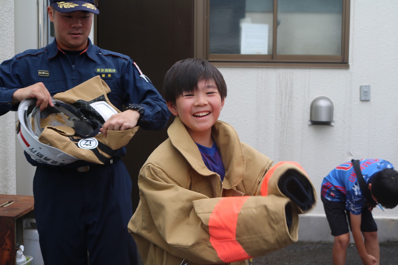 実際に使っている防火衣を着せてもらったり、消防車や救急車に乗せてもらったり、見学ならではの体験ができました。