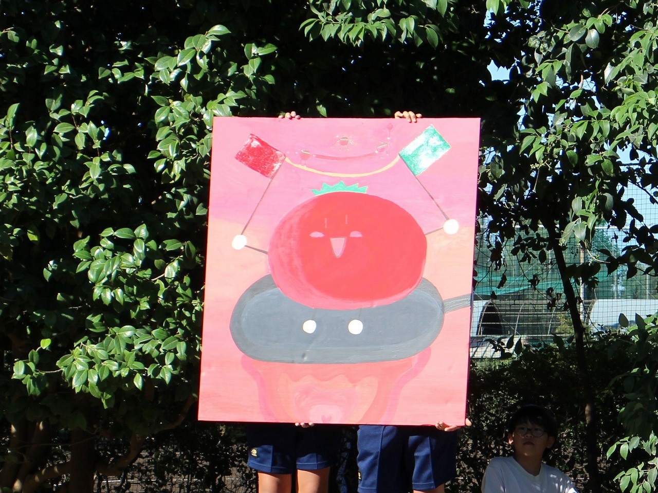 子どもたちが頭にまいている「はちまき」が自分の体の色といっしょであることに気づいたトマト。