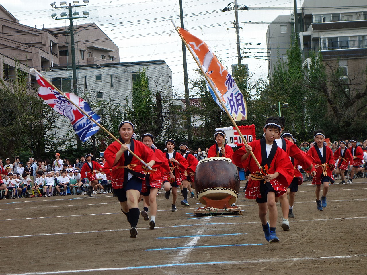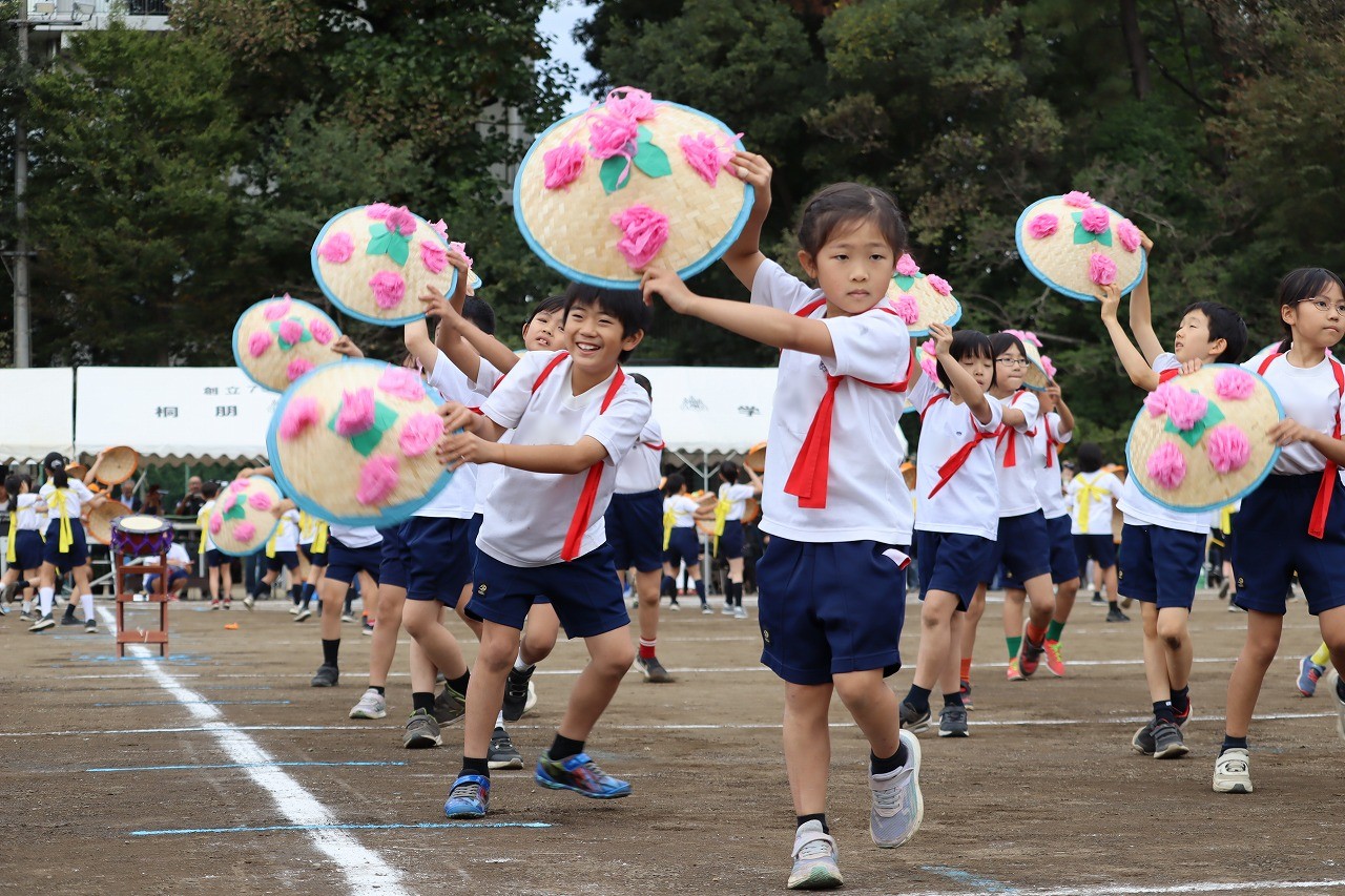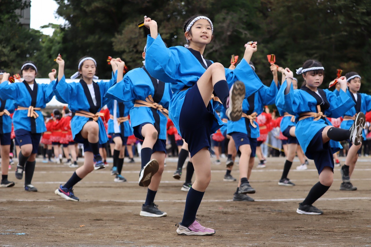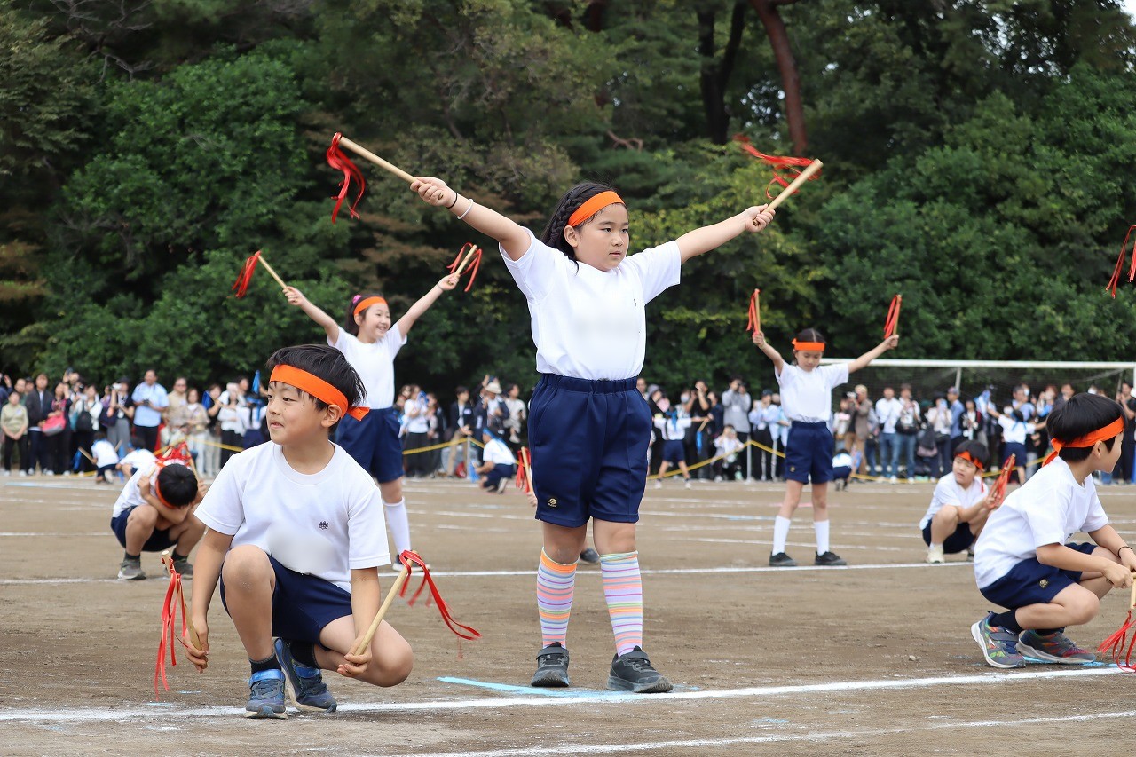 リボンのついたバチをカカカッと鳴らして、小さな体が大きく見えるほど1・2年生は躍動しました。