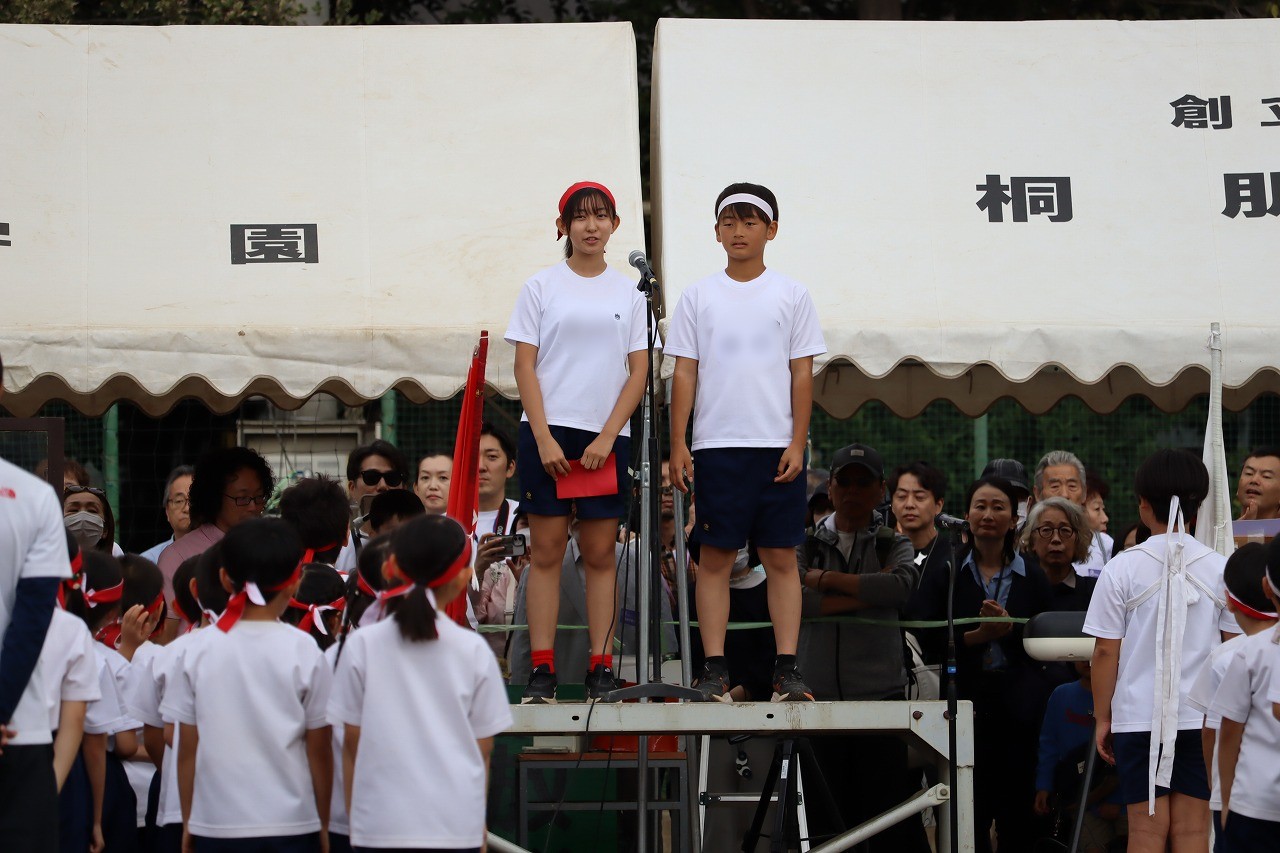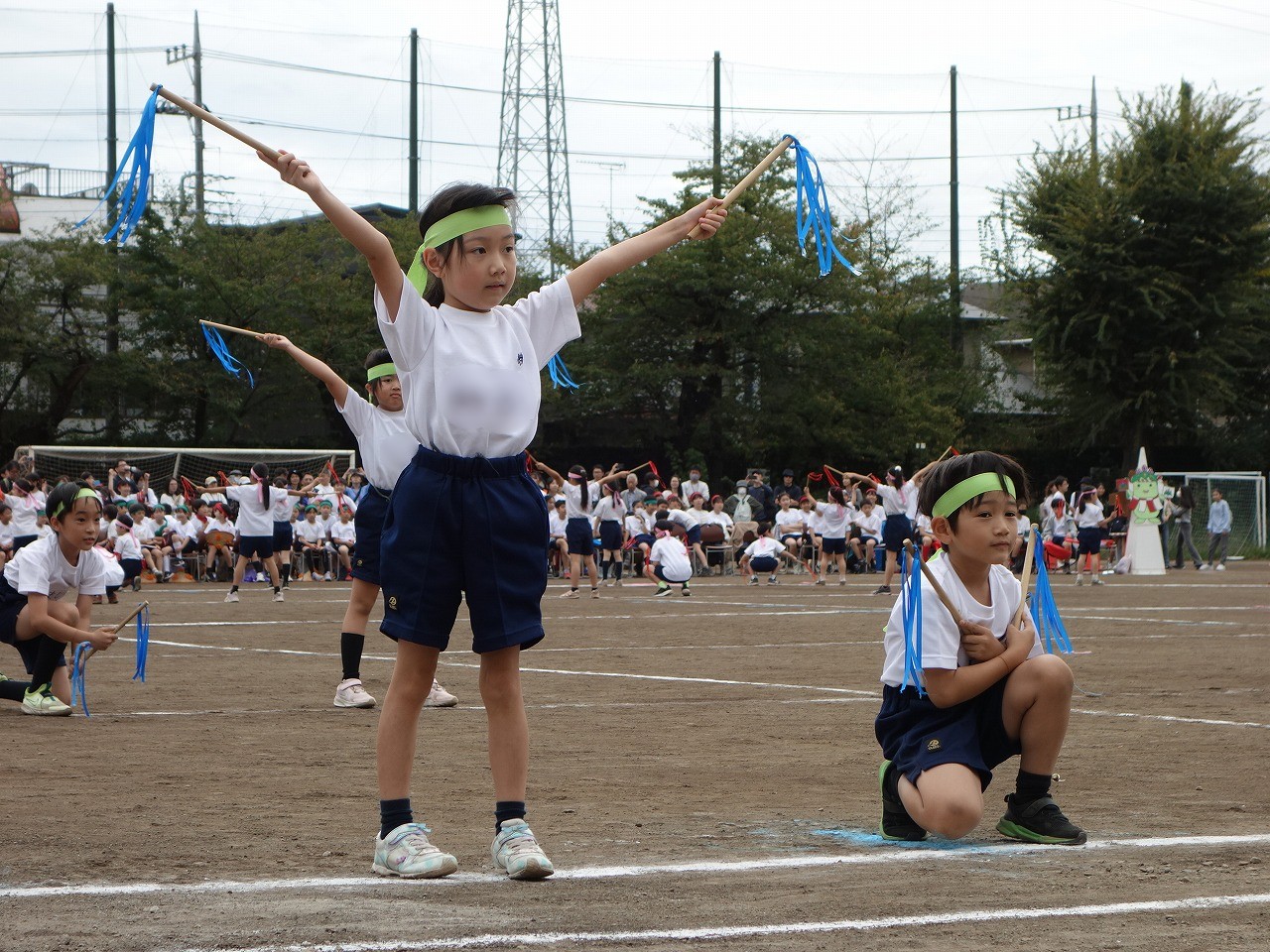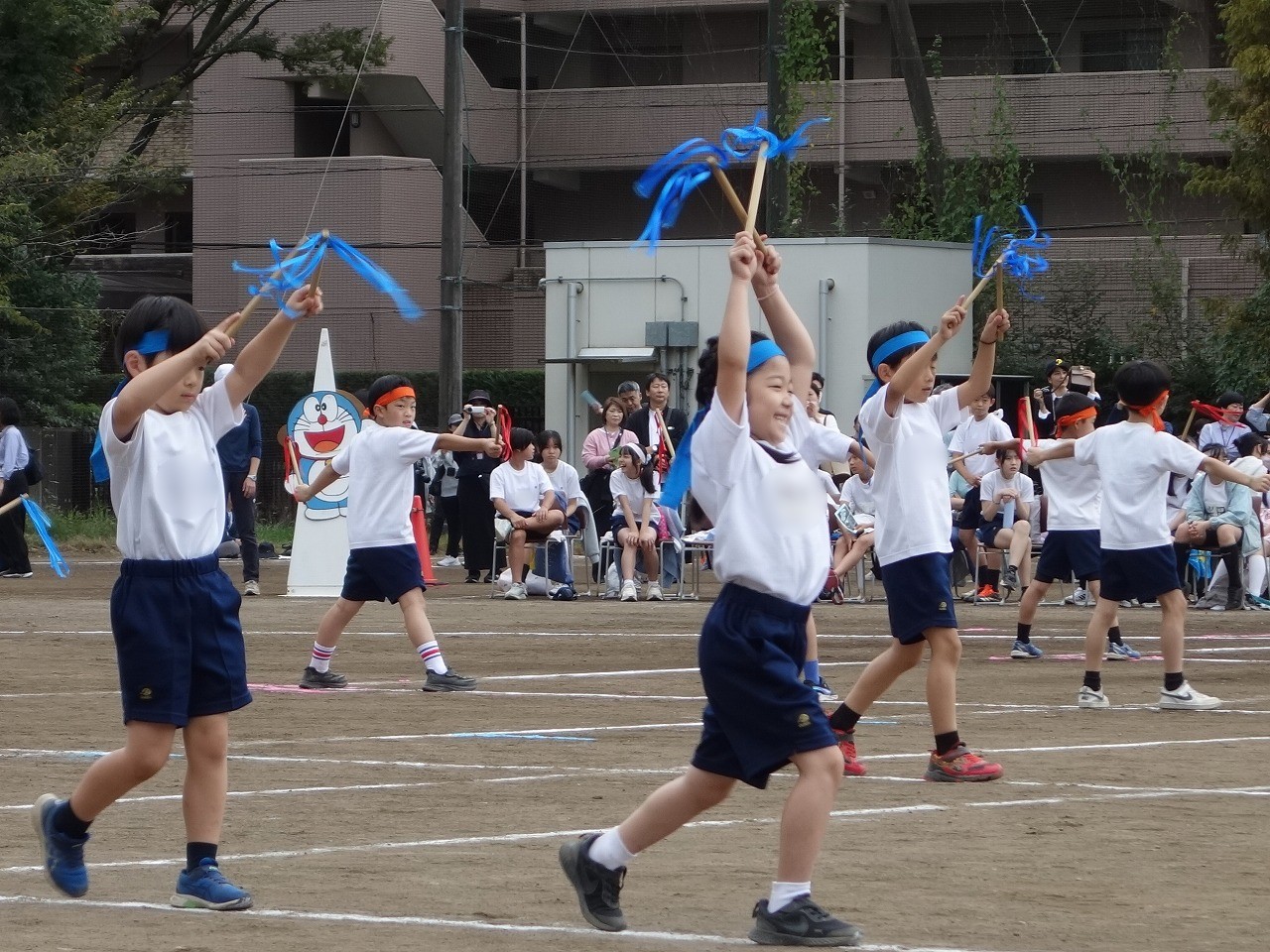 リボンのついたバチをカカカッと鳴らして、小さな体が大きく見えるほど1・2年生は躍動しました。