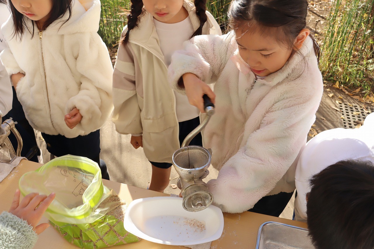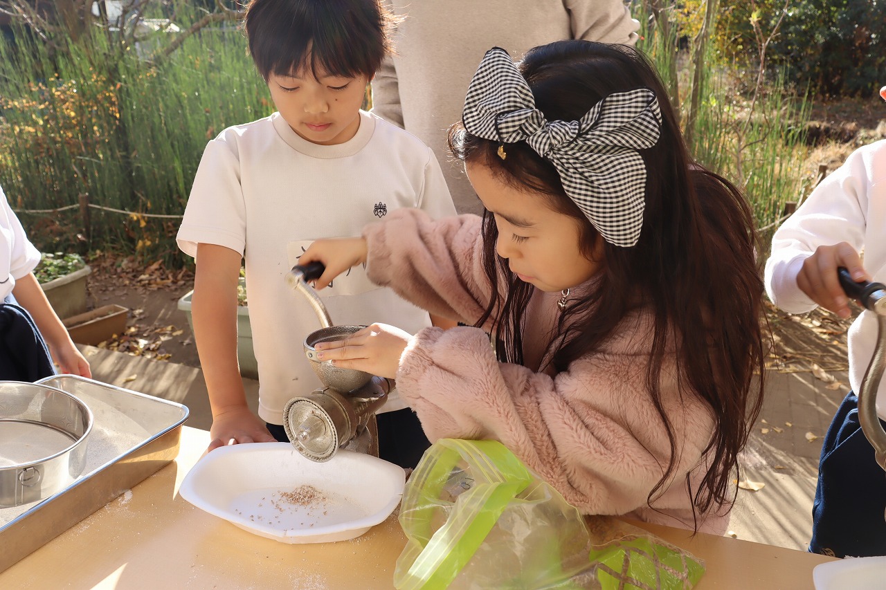 この前の時間には小麦を自分たちでひいて小麦粉にしました。
