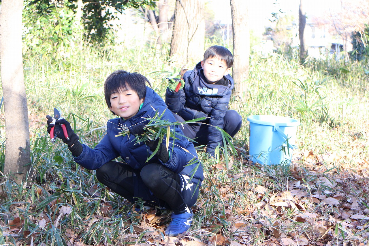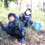 寒いなかでもいっしょうけんめいに校内の木々からエサを集めると