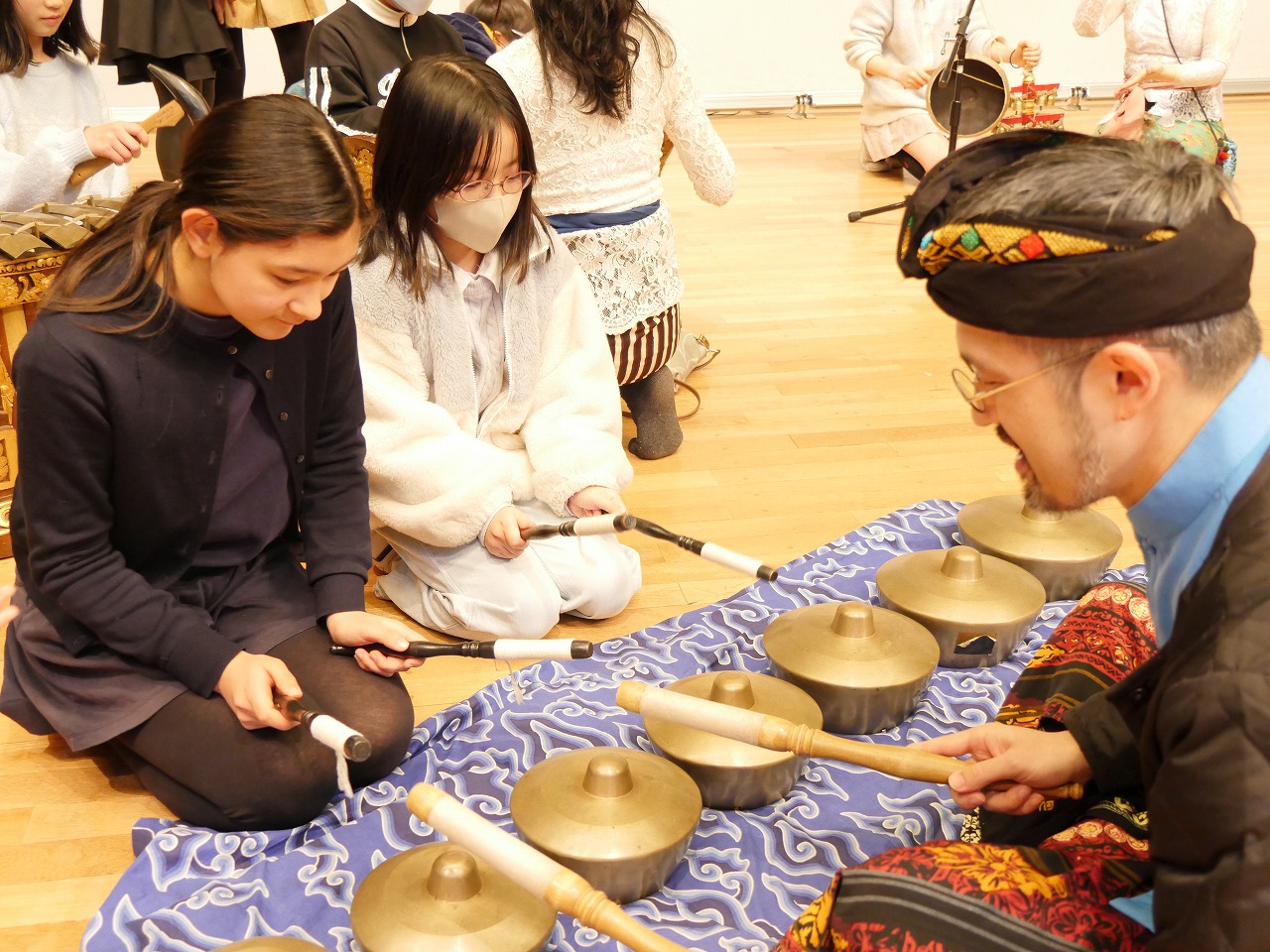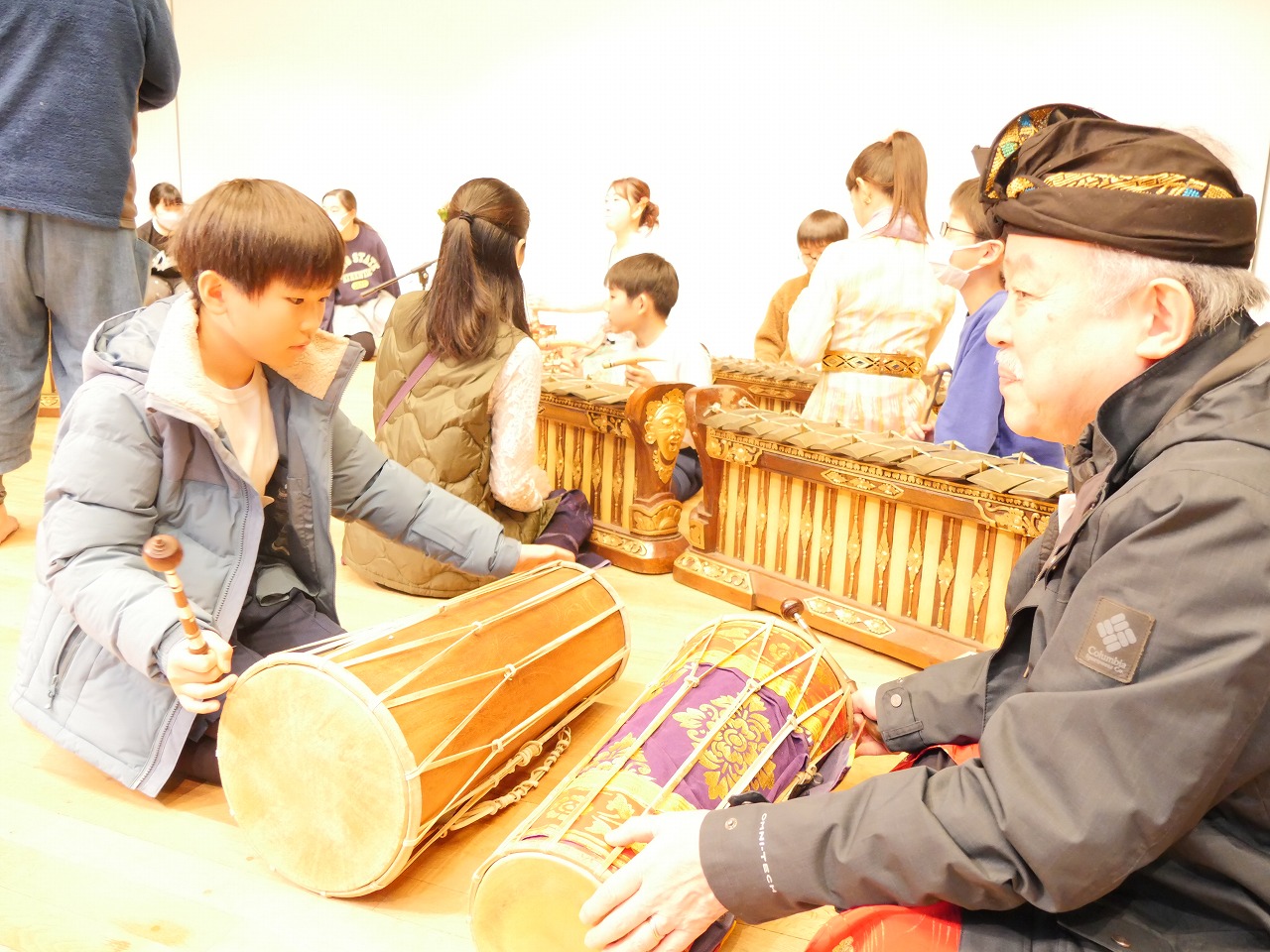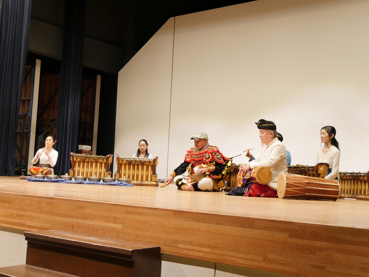 インドネシアの伝統音楽であるガムランを、バリ仮面舞踏家の小谷野哲郎さんとその仲間たちが演奏してくださいました。