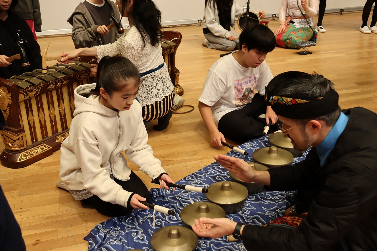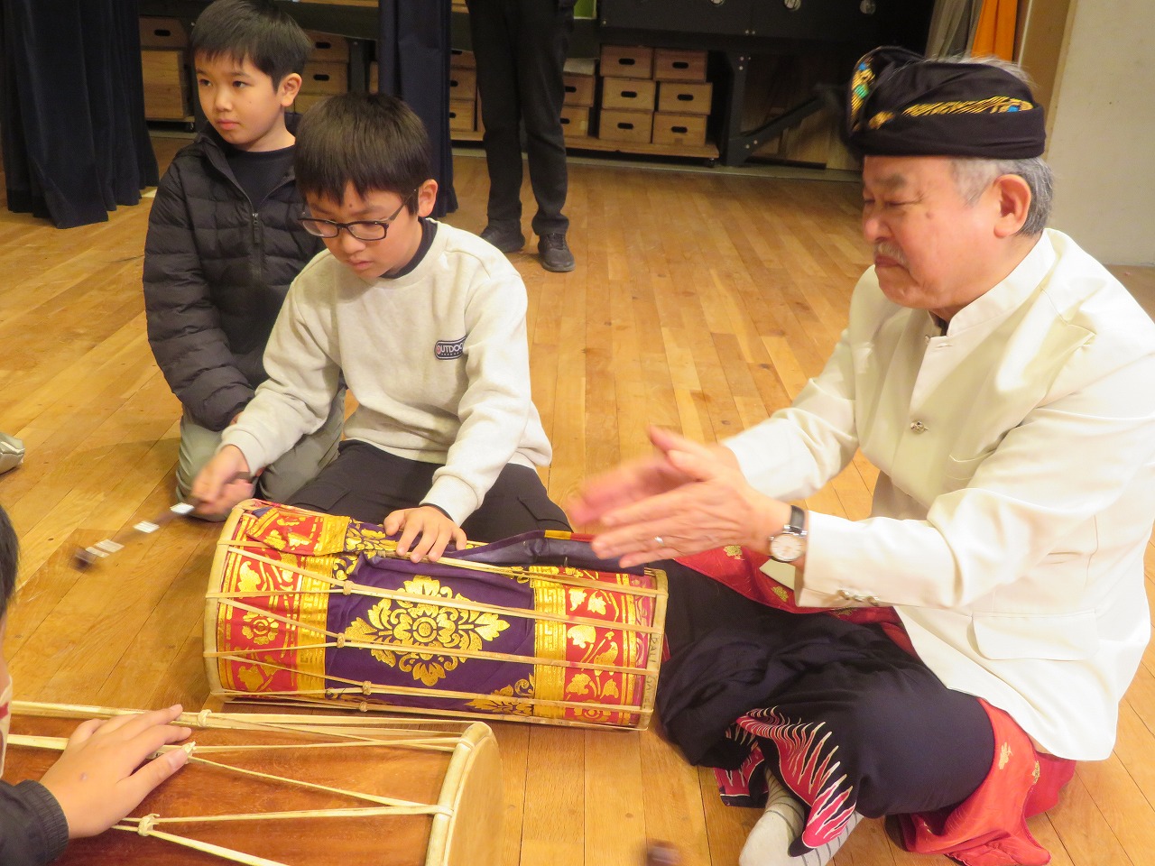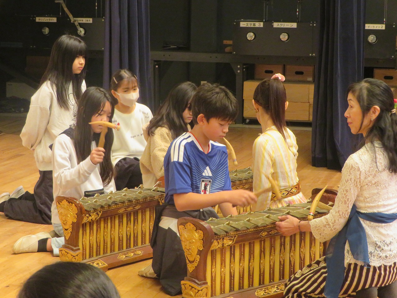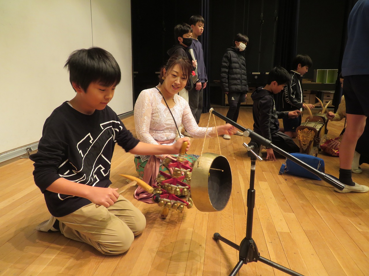 インドネシアの伝統音楽であるガムランを、バリ仮面舞踏家の小谷野哲郎さんとその仲間たちが演奏してくださいました。