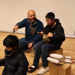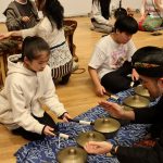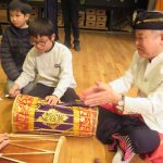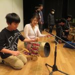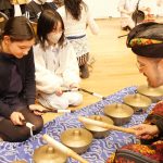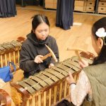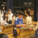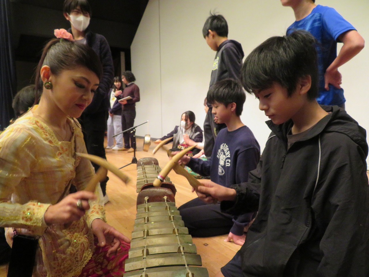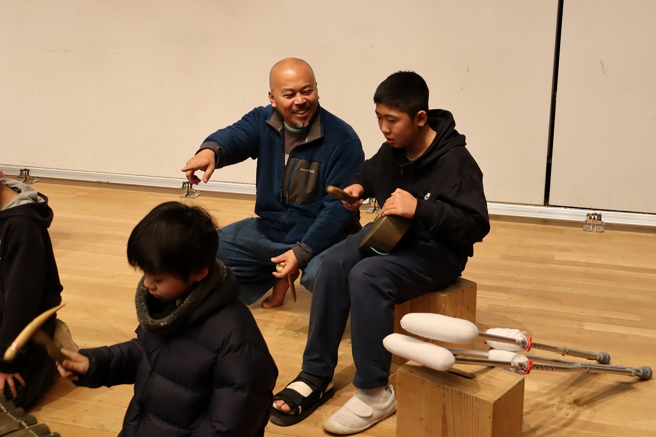 初めて触れる楽器を自分の手で奏でます。奏者の方がひとつずつの楽器の奏で方について丁寧に教えてくださいました。