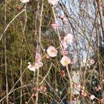 みんなの登校の様子を見守り、教員室に戻るために正門の階段を上ると、右手にあるしだれ梅が花を咲かせ始めている様子が目に入りました。