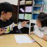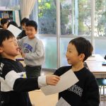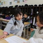 1年生と6年生、それぞれの生活の時間に、冬の思い出を交換しました。