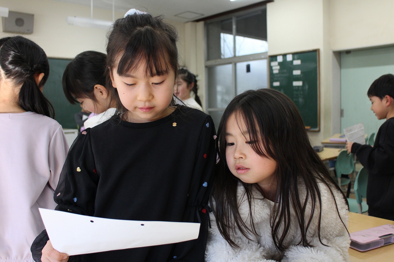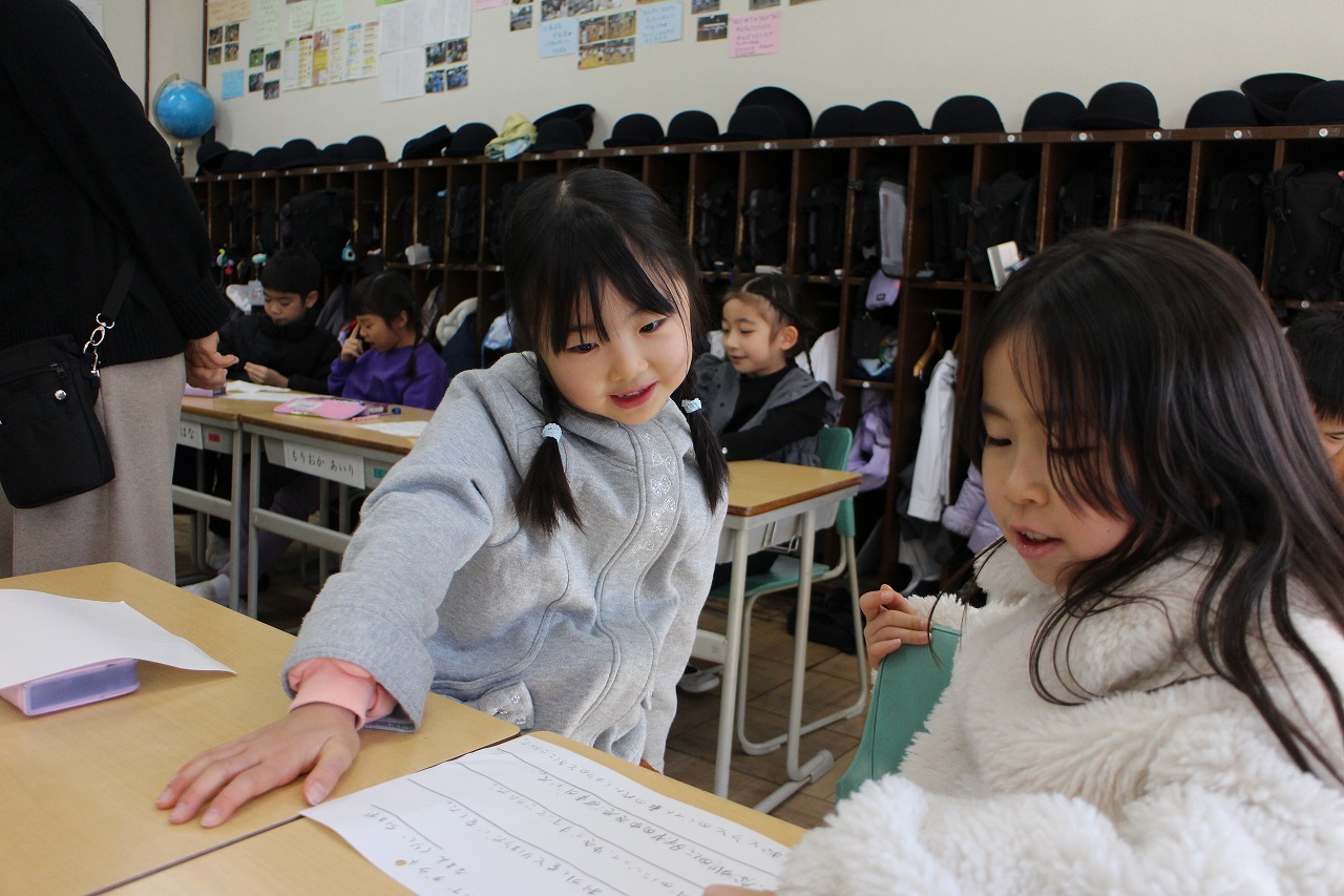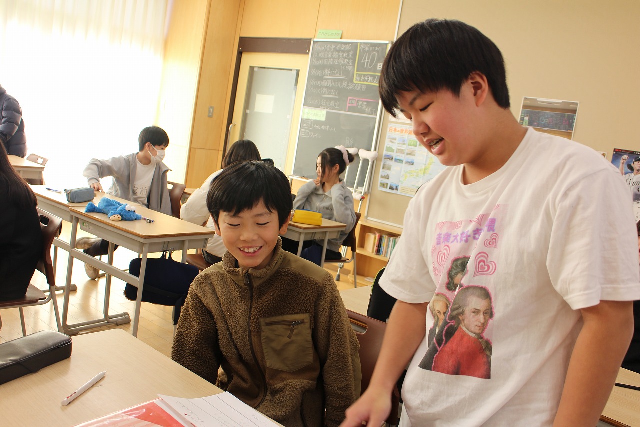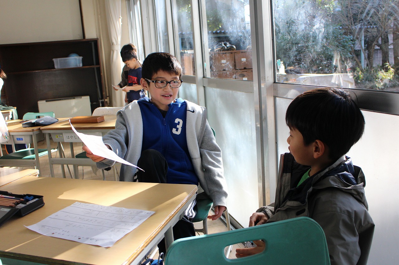 1年生と6年生、それぞれの生活の時間に、冬の思い出を交換しました。