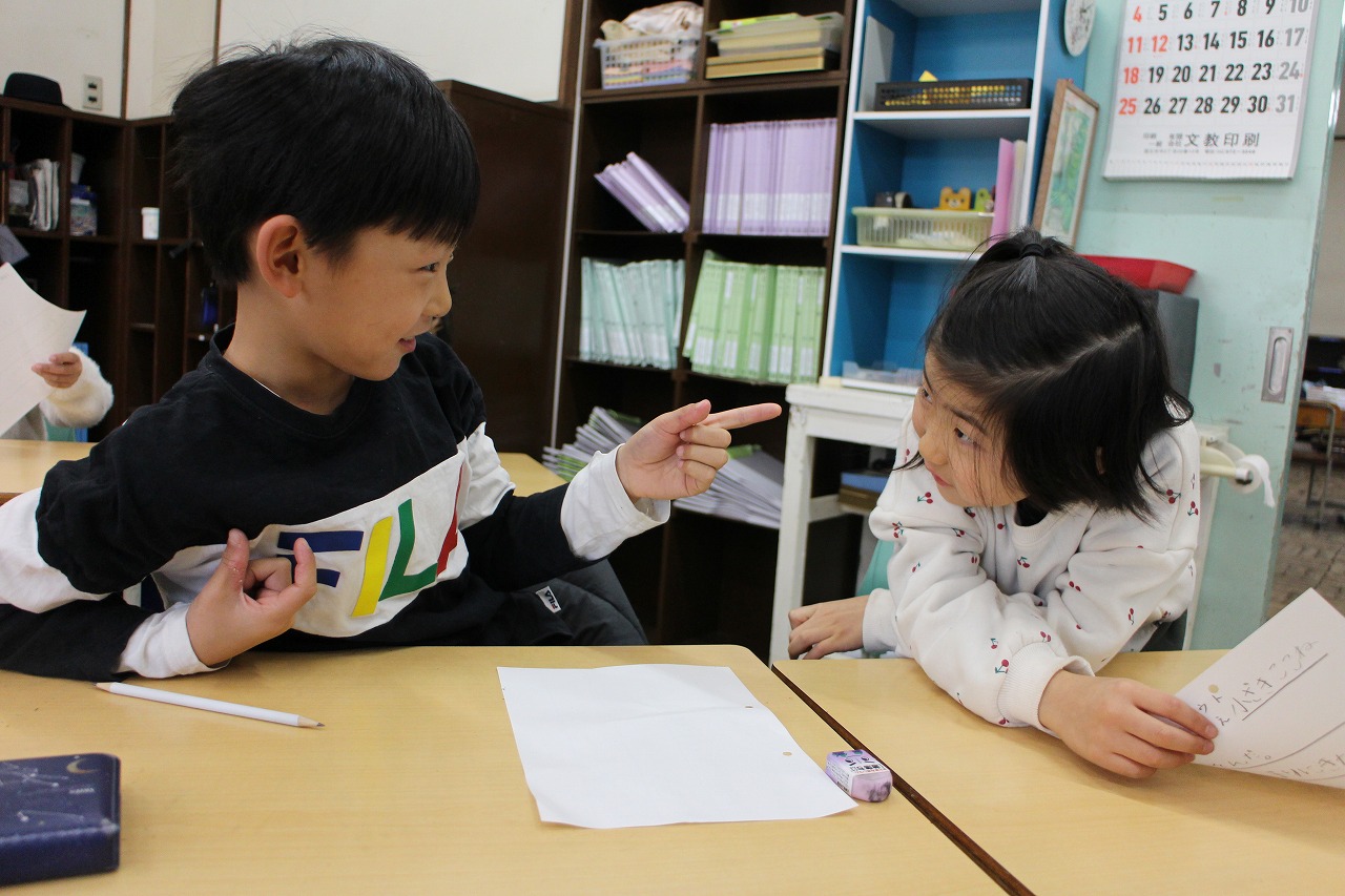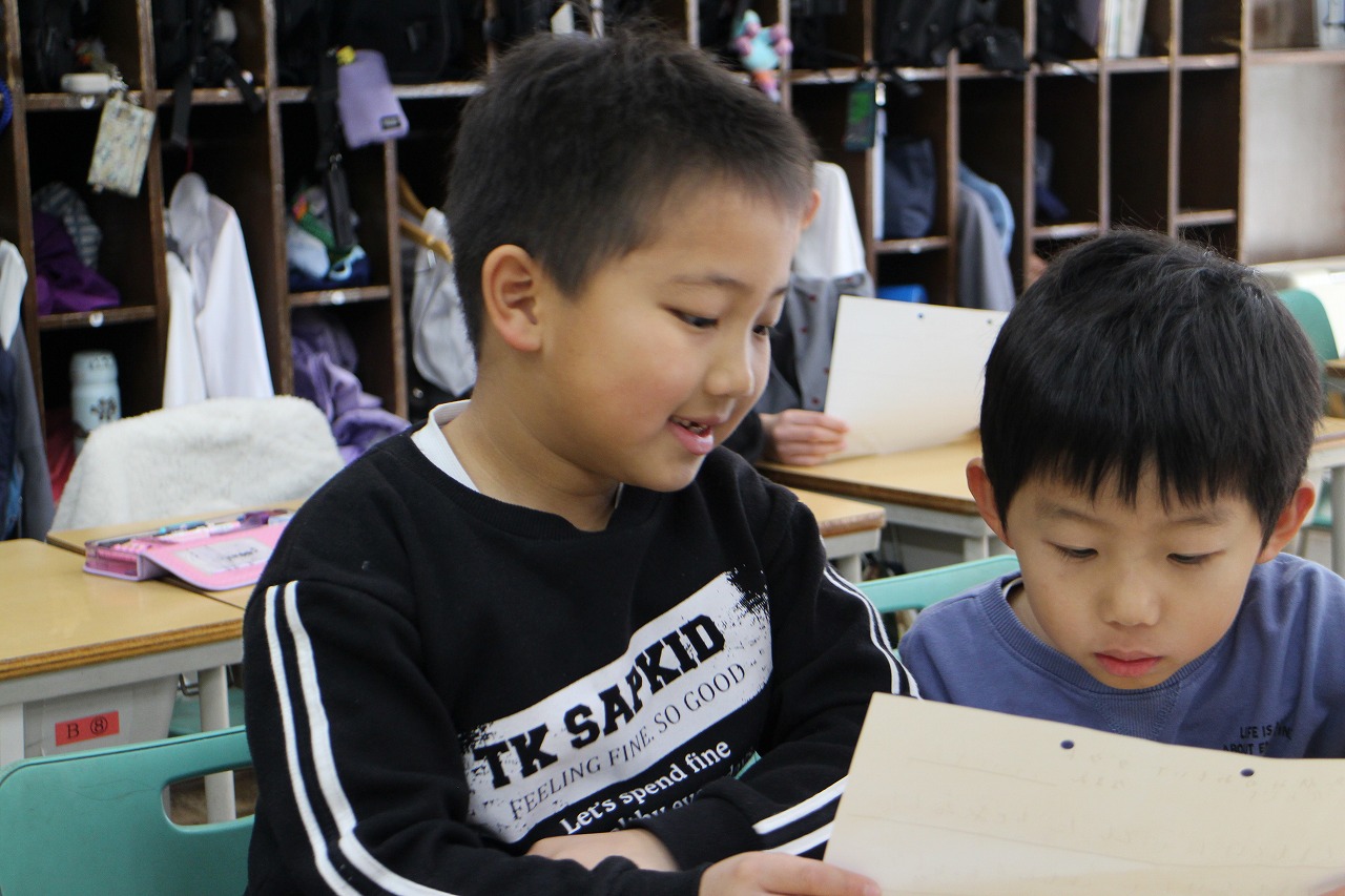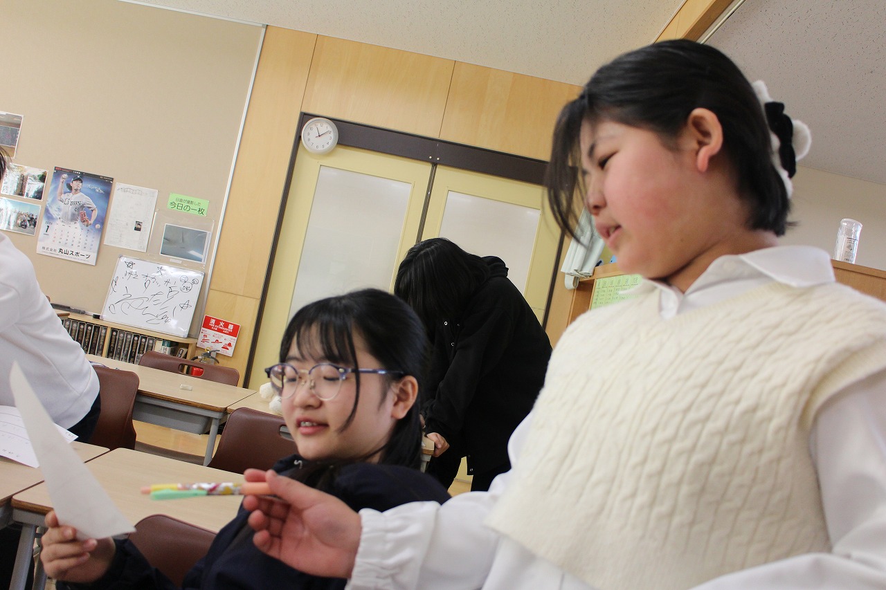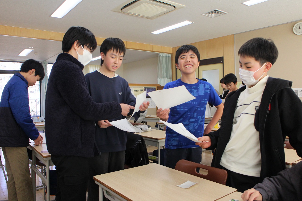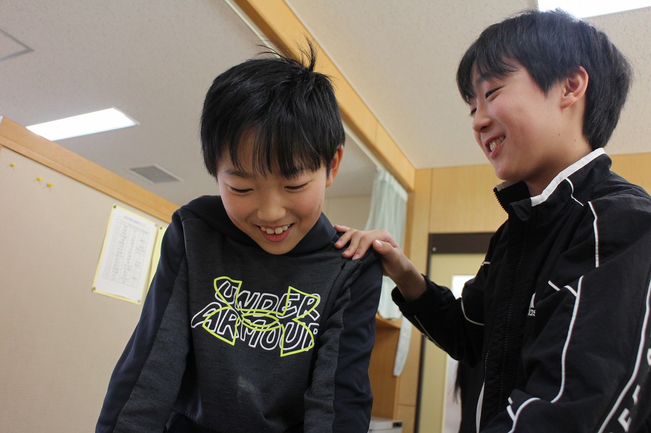 1年生と6年生、それぞれの生活の時間に、冬の思い出を交換しました。
