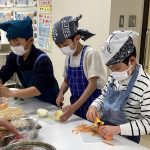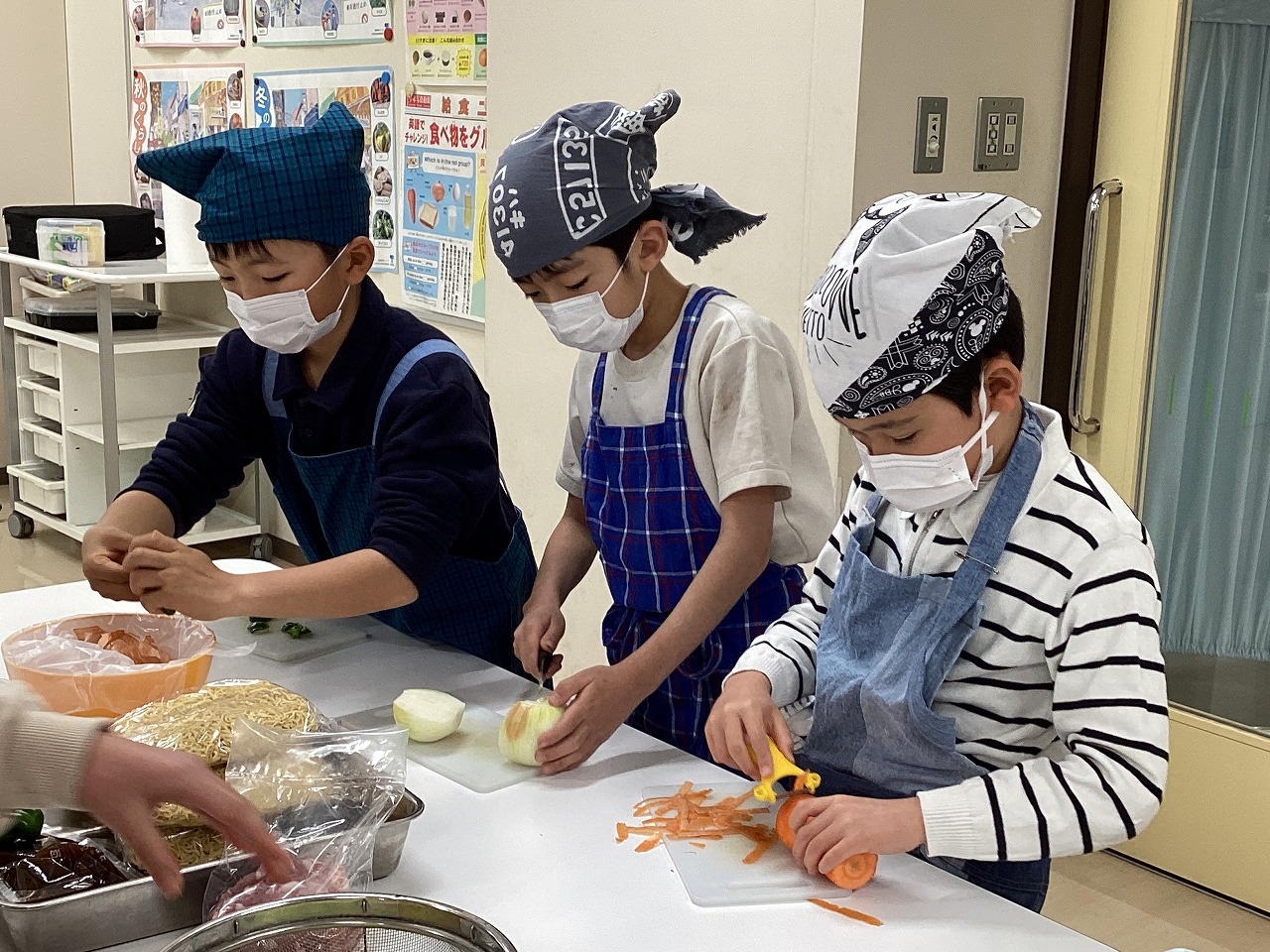 やきそばづくりでは栄養素について学び、そして調理実習では野菜の切り方を学びます。