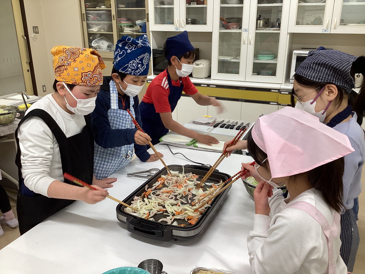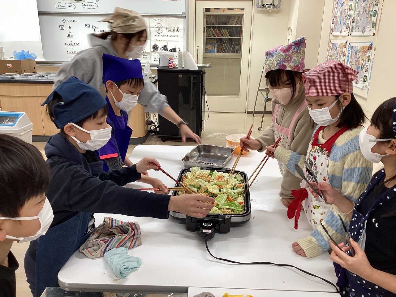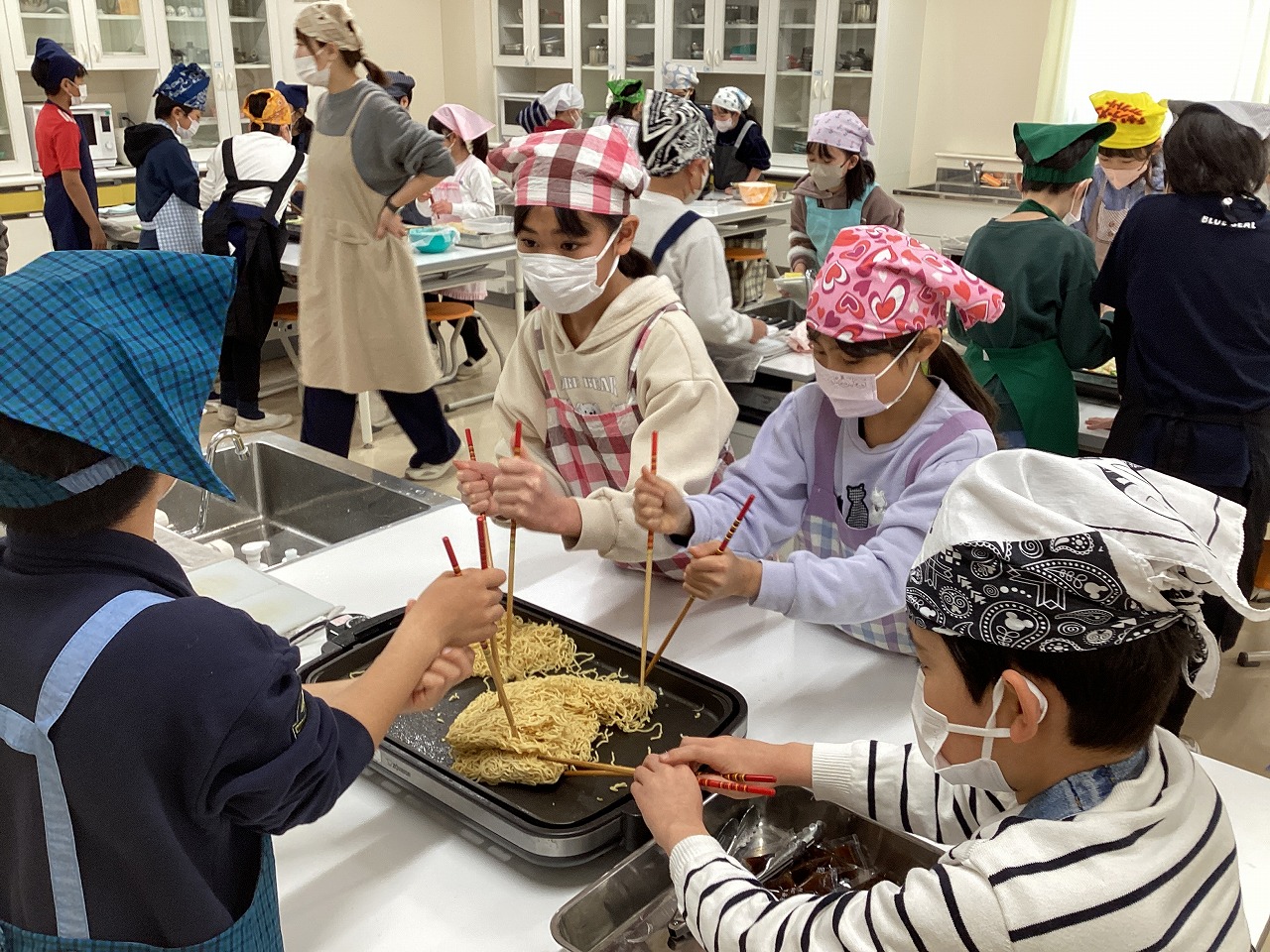 そうです。今日は4年生の調理実習。やきそばづくりです。