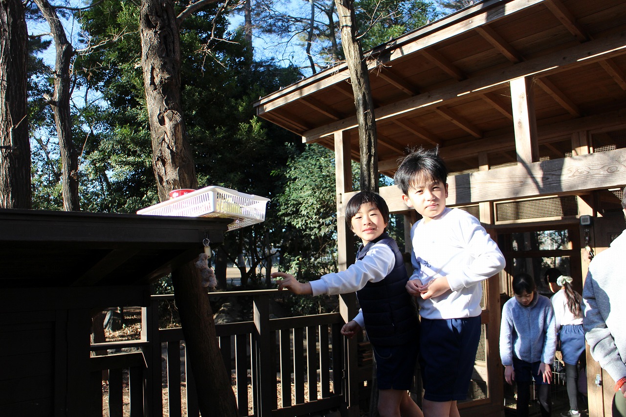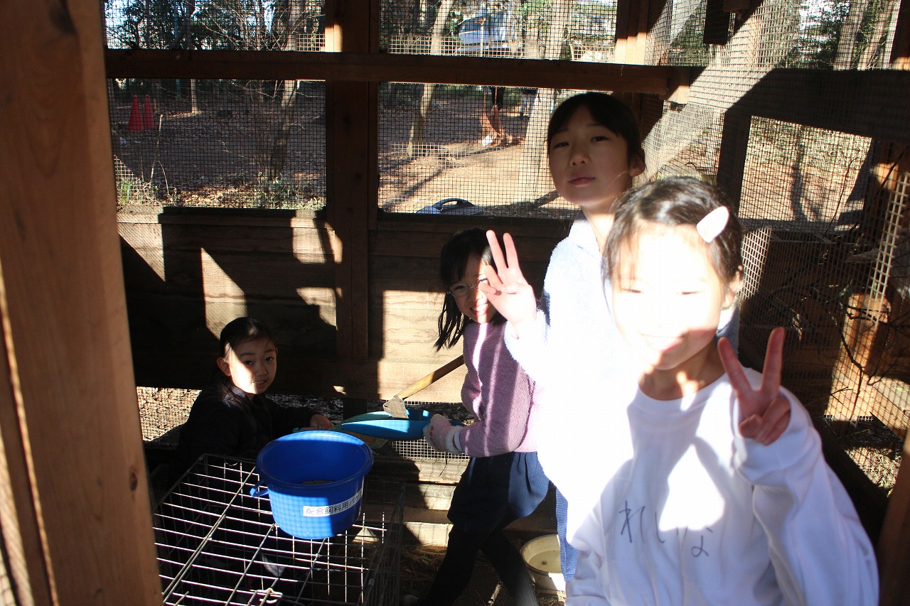 桐朋学園小学校にいるヤギのさつきやうさぎのきなこ、チャボのお世話をするのは4年生の役目です。