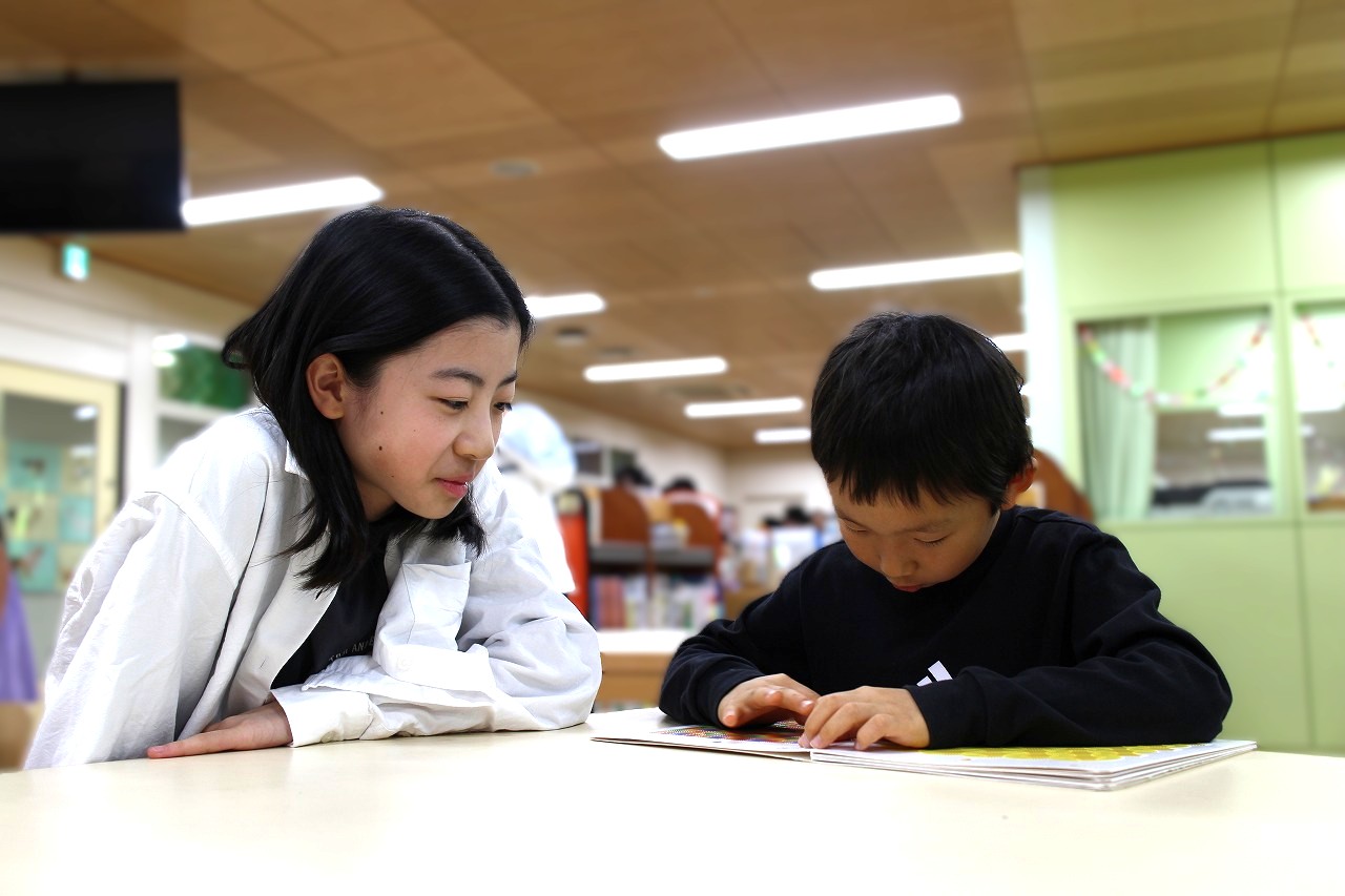 優しい読み聞かされ 2・6年生 図書室案内