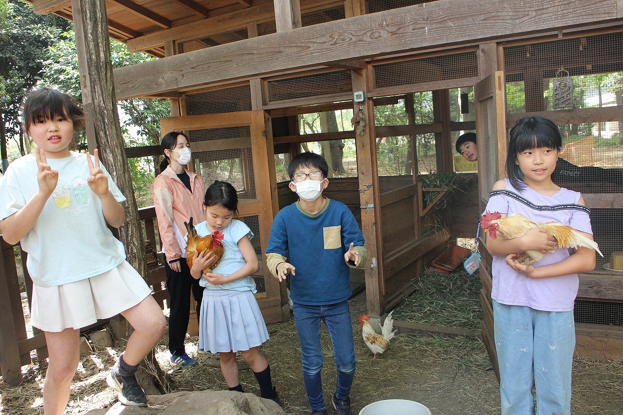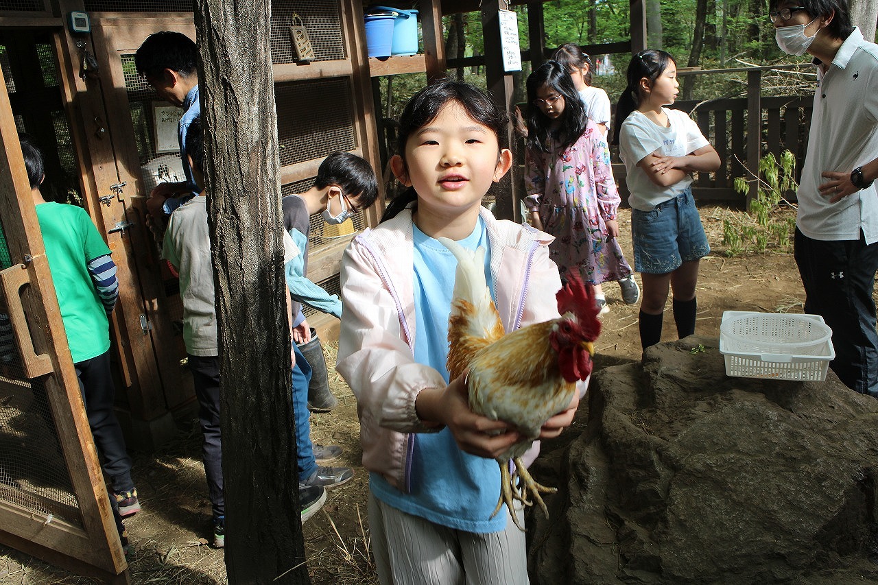 子どもたちの声のするほうに目を向けると、そこにはチャボの姿が。