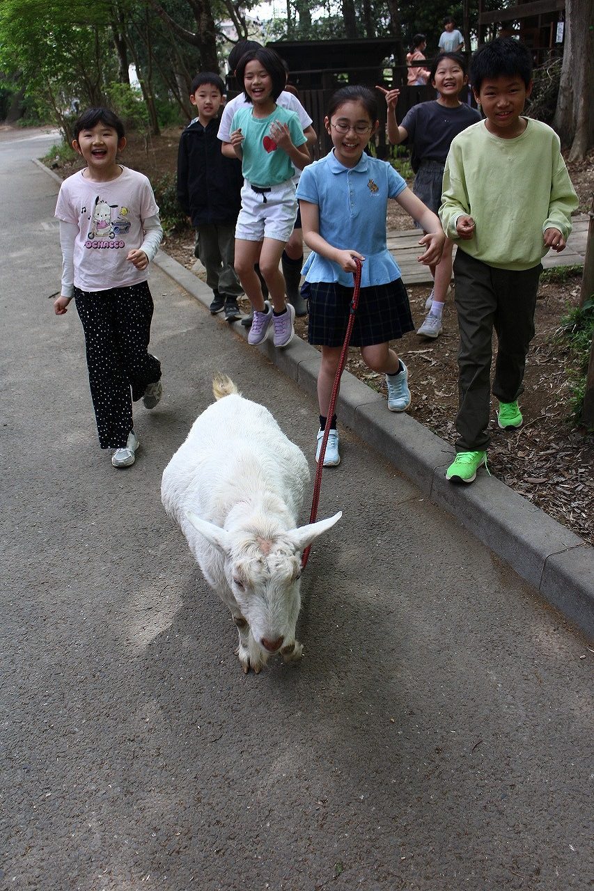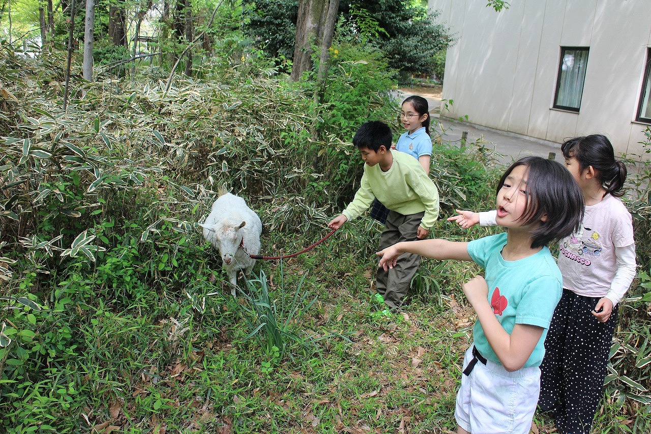 学校で飼っているヤギのさつき、うさぎのきなこ、それにチャボたちを1年間責任を持ってお世話をするのです。