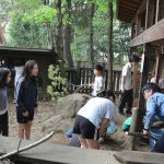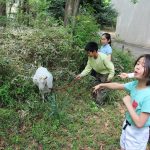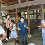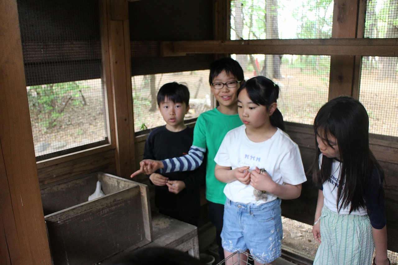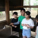 朝から準備万端で飼育小屋に集まる子どもたち。