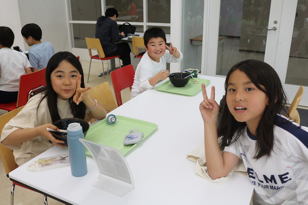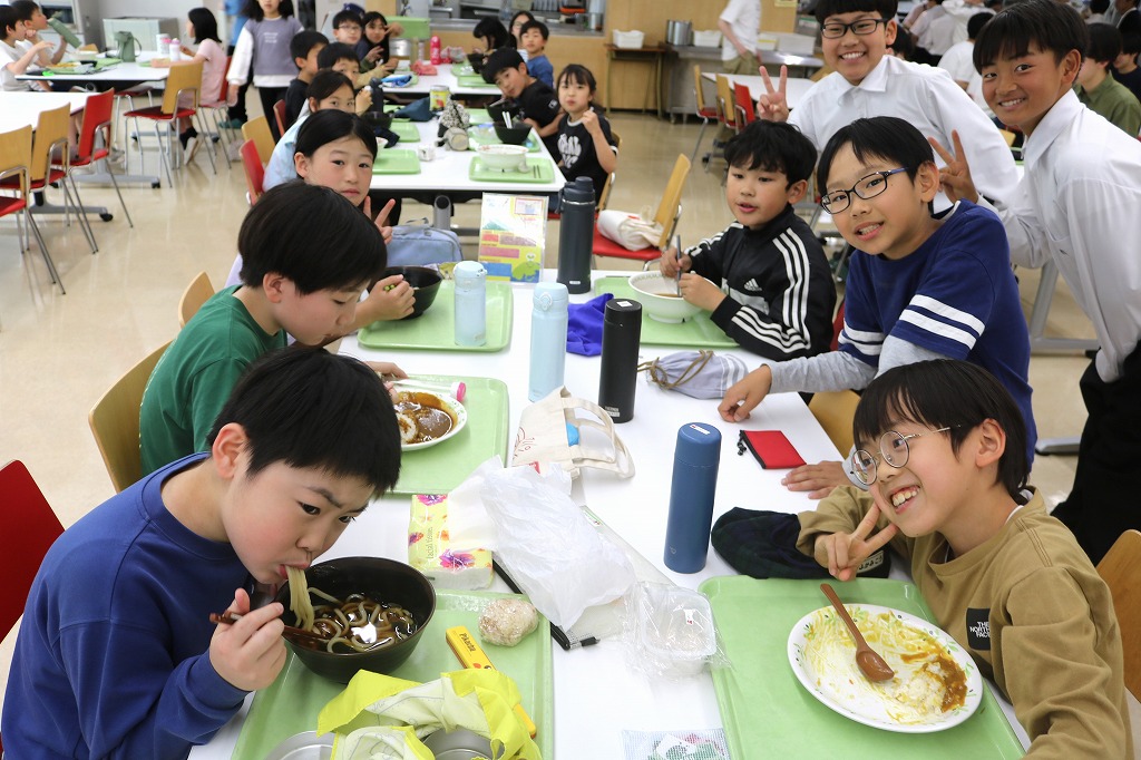 中高にある広い食堂に4年生がやってきました。
